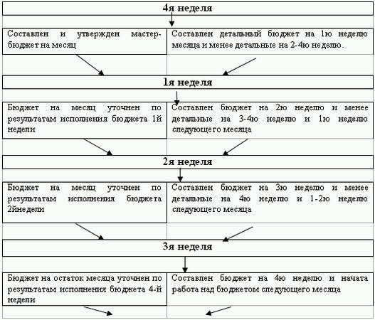 Такая схема построения переходящего бюджета очень актуальна для более ликвидных бюджетов, что позволяет оперативно реагировать все происходящие изменения и не допустить радикальных изменений в процессе планирования.