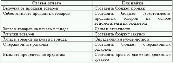 Затем необходимо составить первичный проект отчета о прибылях и убытках. Он является "выходной" формой операционного бюджета. Однако необходимо помнить, что отчет может еще корректироваться, в частности при решении вопроса о наличии или недостаче денежных средств компании.