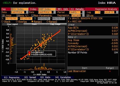 Волатильность Индекса Bovespa (Бразилия) по сравнению с Индексом MSCI EM