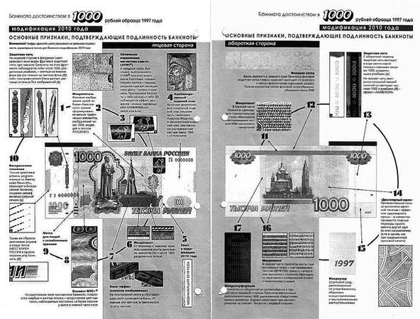 Рис. 1.1.27. Описание банкноты 1000 руб. модификации 2010 г.