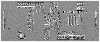Рис. 1.2.56. Элементы магнитной защиты на банкноте 100 долларов США (серия 1996 г.)