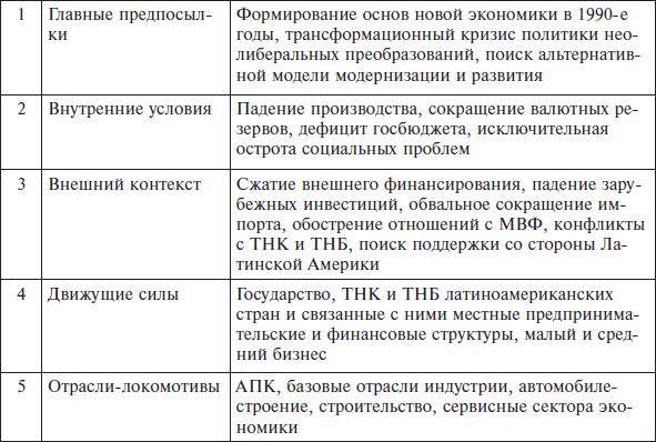 ♦ защита от чрезмерного импортного прессинга промышленных секторов, оказавшихся в сложном положении в ходе неолиберальных реформ, но способных выпускать необходимую стране продукцию;