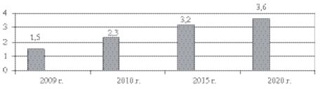 Рис. 12.4. Прогноз производства биодизеля (млн т)