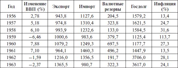 Таблица 1.10 Динамика макроэкономических показателей в 1956–1963 гг. (млн дол.)
