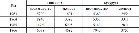 Его приход к власти произошел в обстановке давно невиданного и для многих совершенно неожиданного экономического подъема, пришедшего на смену довольно глубокому спаду. Если в 1962 и 1963 гг. ВВП сокращался соответственно на 1,6 и 2,4 %, то в 1964 г. – вырос на 10,3 % (самый высокий показатель с 1947 г.), а в 1965 г. – еще на 7,1 %. Анализируя причины такого хозяйственного оживления, можно отметить следующее. Во-первых , дали о себе знать требовавшие времени результаты некоторых мер десаррольистов по развитию местной промышленности и привлечению иностранных инвестиций. За прошедшие годы возникли новые сравнительно современные производства, теперь заработавшие в полную силу. Во-вторых , и это, наверное, главное, в 1964–1965 гг. были собраны рекордные урожаи зерновых (см. табл. 1.12), позволившие очень существенно увеличить экспорт и обеспечить суммарный профицит внешнеторгового баланса в размере 1 130 млн дол.79