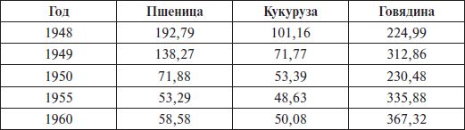 Самым слабым местом и ошибкой стратегического масштаба экономической политики десаррольистов была недооценка роли и потенциального значения аргентинского экспорта, в том числе аграрного. Данное обстоятельство имело свои объяснения. Первое - общетеоретического характера – сводилось к тому, что сельскохозяйственное производство по своей природе "неэластично ", т. е. его объемы невозможно в короткие сроки существенно (а главное – гарантированно) увеличить, и это является естественным ограничителем устойчивого расширения внешней торговли Аргентины. Второе объяснение – конъюнктурного свойства. 50-е и 60-е годы прошлого века – период глубоких качественных изменений в мировой торговле, сопровождавшихся заметным ухудшением условий товарообмена для стран – экспортеров comodities, сырьевых и сельскохозяйственных продуктов: цены на многие из них падали абсолютно (см. табл. 1.11) и относительно промышленных (прежде всего – технически сложных) изделий и новейших технологий. В этих условиях, по мнению десаррольистов, происходило следующее: недооцененный аргентинский экспорт обогащал зарубежных импортеров, а сами производители несли убытки. Отсюда следовал во многом ложный и ошибочный (в силу своей односторонности) вывод – экспортные поставки не выгодны стране и следует сосредоточиться на развитии внутреннего рынка {развитие вовнутрь) и добиваться создания подлинно интегрированной национальной экономики, располагающей всеми необходимыми отраслями, включая базовые, для самостоятельного стабильного роста.