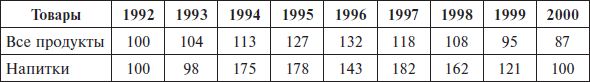 Таблица 5.6 Динамика цен мирового рынка продовольственных товаров в 1992–2000 гг. (1992 г. = 100)
