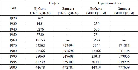 Таблица 5.11 Добыча и подтвержденные запасы нефти и газа (1920–2000 гг.)