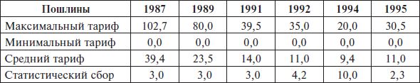 Таблица 6.1 Аргентина: размер импортных пошлин в 1987–1995 гг. (в %)
