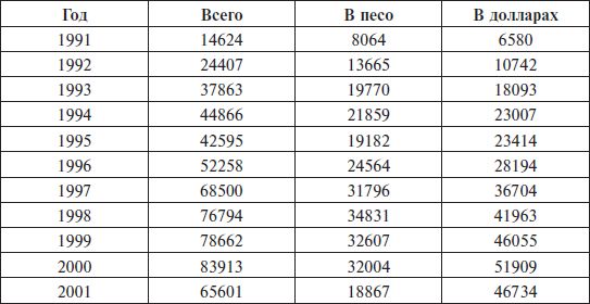Таблица 7.6 Депозиты банковской системы Аргентины в 1991–2001 гг. (млн дол.)