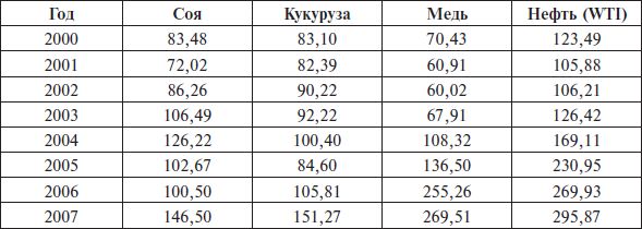 Таблица 11.5 Эволюция среднегодовых цен на основные экспортные товары Аргентины аграрного происхождения (дол. за 1 т)
