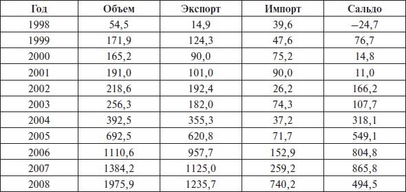 Составлено по: Таможенная статистика внешней торговли Российской Федерации за 1998–2008 гг.