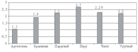 Рис. 12.1. Цена 1 л бензина (в аргентинских песо, без налогов) в отдельных странах Латинской Америки в 2007 г.