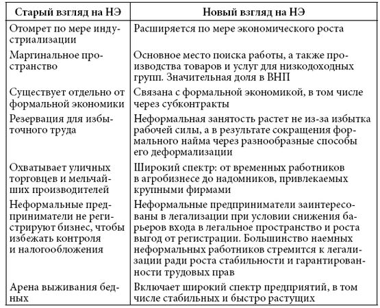 Старый и новый взгляды на неформальную экономику (НЭ) можно представить следующим образом (р. 81):