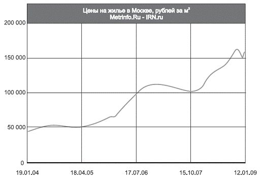 Покупка недвижимости всегда считалась в России самым надежным и выгодным вложением средств. Даже кризис вряд ли сломает этот стереотип. По данным ВЦИОМ, в ноябре 2008 года, когда стагнация на рынке жилья стала очевидной, 48 % россиян по-прежнему воспринимали недвижимость как наиболее безопасный инвестиционный инструмент. И едва ли стоит удивляться этому факту, учитывая динамику цен на столичные квадратные метры: