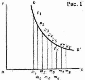 Правильное определение кривой спроса для данного рынка можно изложить следующим образом: кривую спроса на любой товар на рынке в течение любого данного отрезка времени образует траектория точек спроса. Иными словами, это такая кривая, на которой, если с любой точки Р на ней провести прямую РМ перпендикулярно горизонтали Ох, РМ будет представлять цену, по какой покупатели станут покупать количество товара, выраженное отрезком ОМ].