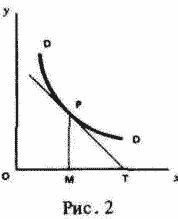Однако, если величины в левом столбце шкалы спроса возрастают, величины в ее правом столбце всегда сокращаются. [Таким образом, когда точка на кривой удаляется от вертикали Оу, она неизменно приближается к горизонтали Ох. Поэтому, если провести прямую FT от точки Р на кривой до точки Т на Ох, угол РТх будет тупым углом. Представляется целесообразным изложить это обстоятельство короче, а именно в виде выражения: