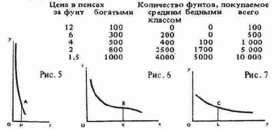 Текущие цены на абрикосы и подобные им фрукты, на лучшие виды рыб и другие умеренно дорогие деликатесы таковы, что всякое их снижение резко увеличивает потребление этих продуктов средним классом; другими словами, спрос на них со стороны среднего класса очень эластичен, тогда как со стороны богатых и со стороны рабочих он намного менее эластичен - у первых потому, что спрос уже почти насыщен, а у вторых потому, что цены все еще слишком высоки.
