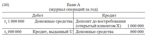 Предположив вслед за Брешиани-Туррони, что все платежи выполняются между клиентами одного банка (либо занимающего монопольное положение, либо ввиду особых обстоятельств, определяющих такую ситуацию), рассмотрим бухгалтерские записи, которые покажут процесс продвижения к такому результату.