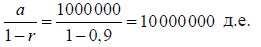 В нашем примере r = 0,9; а = 1 000 000 д.е. и, следовательно, сумма членов прогрессии будет равна: