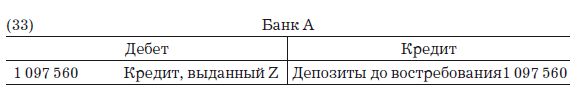 Теперь банк А сможет создать и предоставить кредит клиенту Z на сумму, определяемую формулой [3], результатом чего станет такая запись: