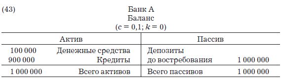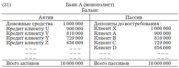 Поэтому баланс банка А, банка-монополиста, в конце концов будет выглядеть следующим образом: