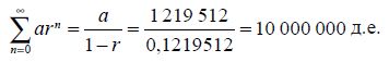 По мере продолжения этого процесса цепочка депозитов и кредитов расширяется на все банки системы. Когда полностью исчезнет воздействие первичного депозита в 1 000 000 д.е., общая сумма депозитов, созданных банковской системой, будет равна сумме последовательности: