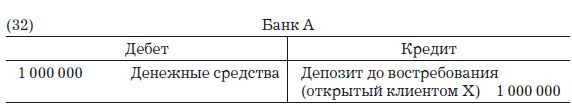 Предположим, что г-н Х кладет в банк А на депозит 1 000 000 д.е. В этом случае банк делает следующую бухгалтерскую проводку: