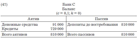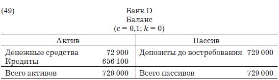 В заключение отметим, что два частных случая ведут к идентичным результатам в том, что касается создания новых кредитов (9 000 000 д.е.) и общего объема депозитов (10 000 000 д.е.). В первом случае была рассмотрена система мелких банков с k = 0. Второй случай – изолированный банк с k = 1. С учетом того, что эти примеры просты для понимания, они обычно используются в учебниках для объяснения создания кредитов и объема депозитов, генерируемых банковской системой. Разные авторы ссылаются либо на систему крохотных банков, либо на единственный банк-монополист (или на банк, чьими клиентами являются конечные получатели кредитов).