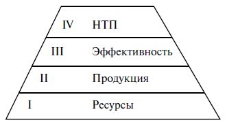 Систему международных сопоставлений основных макроэкономических показателей главных капиталистических стран можно представить в виде трапеции (рис. 1), в основании которой лежат показатели затрат производственных ресурсов (I), на следующей ступени снизу – показатели выпуска произведенной продукции (II), затем идут показатели эффективности производства (III), образующиеся путем соотнесения затрат ресурсов к объемам выпускаемой продукции. Наконец, на IV ступени находятся показатели НТП.