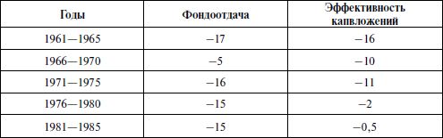 Таблица 9 Динамика эффективности основных фондов и капвложений в СССР в 1961–1985 гг. (%)