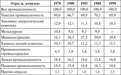 Таблица 11 Структура промышленного производства СССР в 1970–1990 гг. (в %)