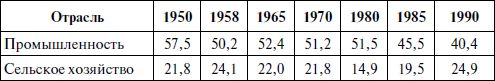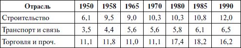 Таблица 10 Отраслевая структура национального дохода СССР _в 1950–1990 гг. (в %)_