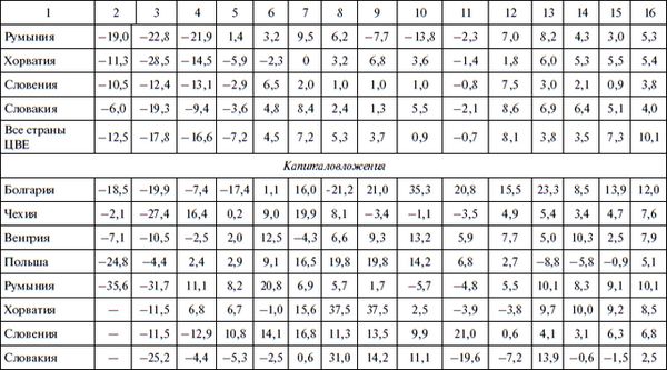 Важно отметить, что в отличие от стран Западной Европы, переживших циклический кризис в 2001–2003 гг., страны ЦВЕ развивались в эти годы сравнительно высокими темпами и закупали по импорту значительные объемы продукции из Западной Европы, помогая тем самым ей избавиться от экономического кризиса. В странах ЦВЕ после 1994 г. стала расти норма накопления и происходили широкомасштабные процессы приспособления к новым рыночным условиям, к новым рынкам и новой структуре спроса.