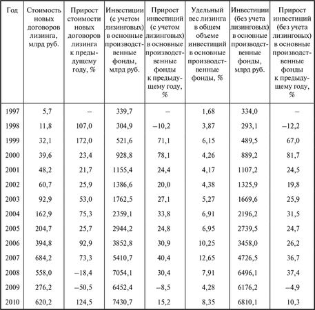 Несмотря на то, что российский лизинговый рынок, пока, можно отнести к развивающемуся рынку, нам удалось выделить четыре цикла его развития: 1996–1999 гг.; 2000–2004 гг.; 2005–2007 гг.; 2007–2011 гг. Возможно, что крайний в этом списке цикл закончится не в 2011 г., а в 2012 г. или позже. Многое здесь будет зависеть, во-первых, от действий властей в части стимулирования обновления основных фондов посредством лизинга; во-вторых, от того, до какого уровня и года будет продолжаться наращивание объемов нового бизнеса и с учетом первого условия.