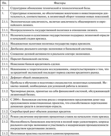 Выявление и классификация причин возникновения кризиса в лизинговой отрасли может способствовать разработке механизмов, позволяющих в дальнейшем оперативно и, главное, осмысленно принимать наиболее обоснованные управленческие решения, т. е. учиться на допущенных ошибках. Это и является самым главным уроком кризиса.