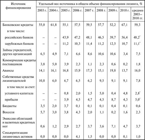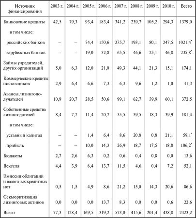 Наиболее значимые источники финансирования лизинга в нашей стране, по данным обследованных за восемь лет компаний, представлены в табл. 2.2.