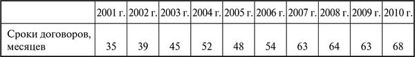 В 2001 г. величина маржи по большинству сделок находилась на уровне около 5 % в год без учета расходов по налогам. Среднее значение этого показателя по обследованным нами лизинговым компаниям в 2003 г. составляло 3,85 %, в 2004 г. – 3,7 %, в 2005 г. – 3,04 %, в 2006 г. – 2,99 %, в 2007 г. – 3,1 %, в 2008 г. – 3,4 %, в 2009 г. – 3,7 %, в 2010 г. – 3,3 %. Как отмечалось выше, за указанный период сроки договоров лизинга росли, а значит, возрастали риски, и лизингодатели в маржу закладывали премию за повышенный риск. Тем не менее средняя ставка маржи сокращалась.