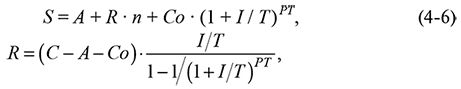 где А – авансовый платеж; С – первоначальная стоимость имущества; R – один текущий лизинговый платеж; Co – остаточная (выкупная) стоимость; I – лизинговый процент в долях; T – частота платежей в течение года; Р – срок договора лизинга в годах. Справочно: n = Р · Т.