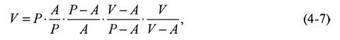 Следующий показатель в цепи сомножителей данной модели отражает реальное удорожание лизинга. На практике при расчете среднегодового удорожания лизинга можно порой встретиться с некоторой "забывчивостью" лизинговых компаний, которые в своих расчетах не учитывают величину авансового платежа, т. е. средств, которые им не принадлежат, и пытаются дополнительно заработать за счет лизингополучателя. Если принять во внимание аванс, внесенный лизингополучателем, профинансировавшим часть стоимости лизинговой сделки, то тогда общее реальное удорожание лизинга строится на основе пропорции (V – А) / (P – А).