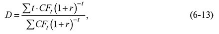 Согласно определению Фредерика Макалея, дюрация (от англ. duration, т. е. "продолжительность") – это средневзвешенный срок к погашению денежного потока ценной бумаги. В качестве весов используется приведенная стоимость этих платежей. При этом расчет ведется по формуле где D – дюрация; t – срок платежа или элемента денежного потока по облигации; CFt – величина элемента денежного потока по облигации в году t; r – доходность к погашению (полная доходность).