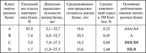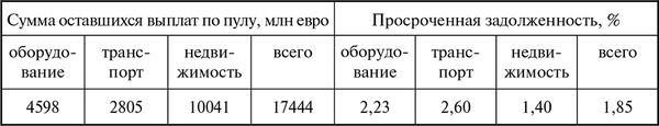 8. Нами были рассмотрены результаты исследования итальянского рынка Lease ABS [Frascella, Mascari, Nobili, 2006] по поводу исполнения 24 сделок секьюритизации лизинговых активов в Италии (табл. 7.6). Сумма оставшихся к исполнению обязательств по облигациям равнялась 17,5 млрд евро, а общий объем эмиссий по этим сделкам составил 21,5 млрд евро. Это около половины от стоимости находившихся в обращении бумаг. То есть на момент оценки было погашено задолженности на 4 млрд евро и оставшийся долг составлял 81,3 %.