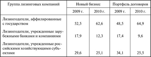 Рыночная концентрация лизинга в 2010 г. повысилась. Если два года назад число компаний, на долю которых приходится более половины объемов нового лизингового бизнеса в стране, составляло почти два десятка, то год назад – шесть, а в прошлом году – всего пять. Правда, этот показатель коррелирует с соответствующими значениями концентрации лизинга во многих европейских странах.