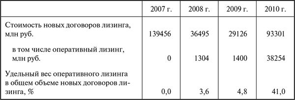 Оперативный лизинг в компании "ВТБ-Лизинг" в 2007–2010 гг.