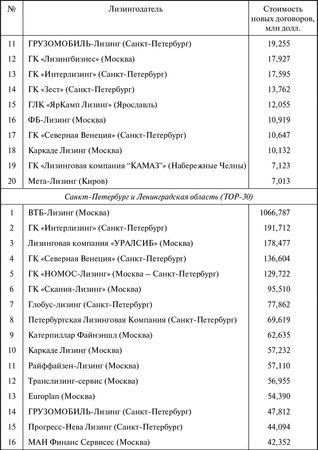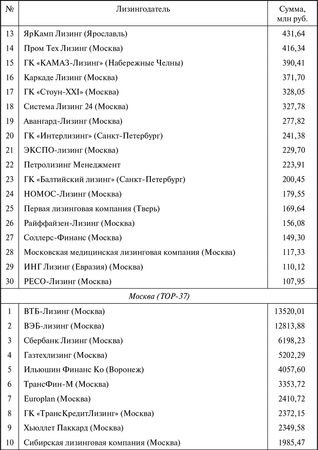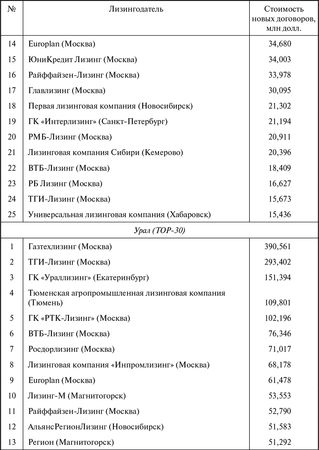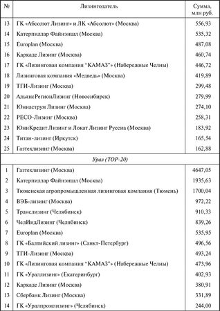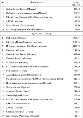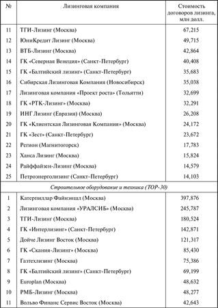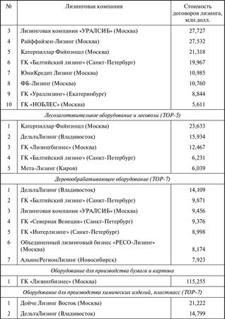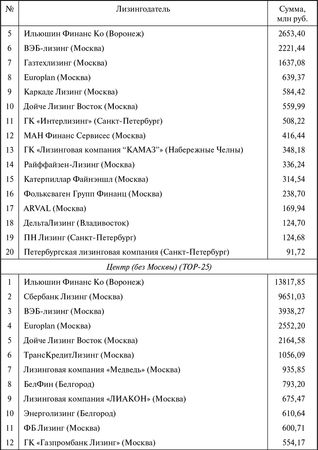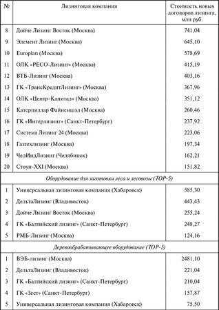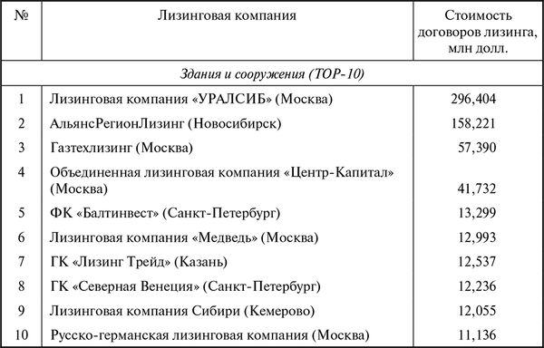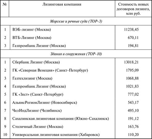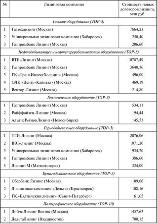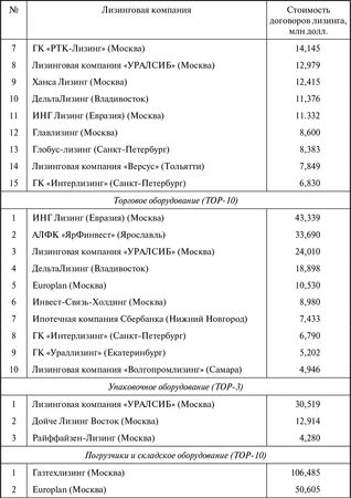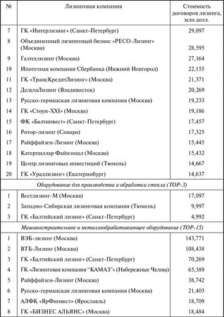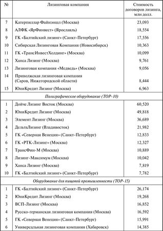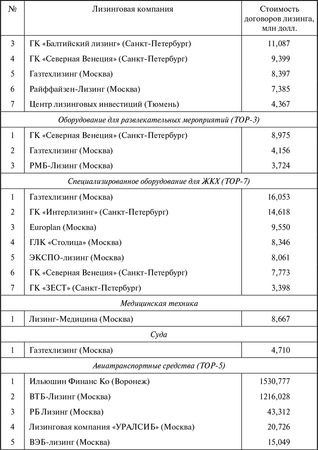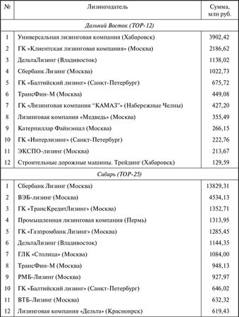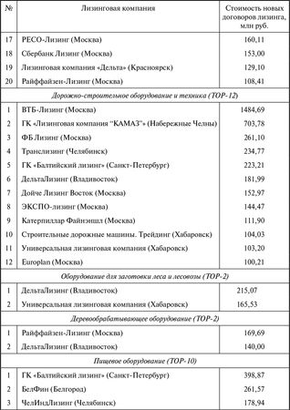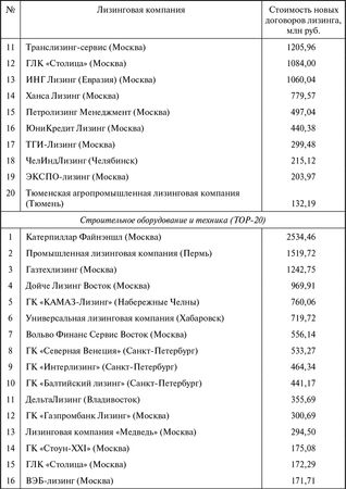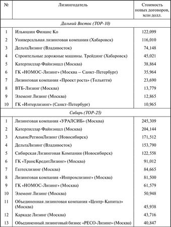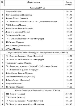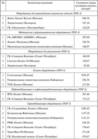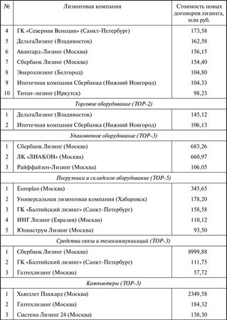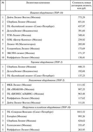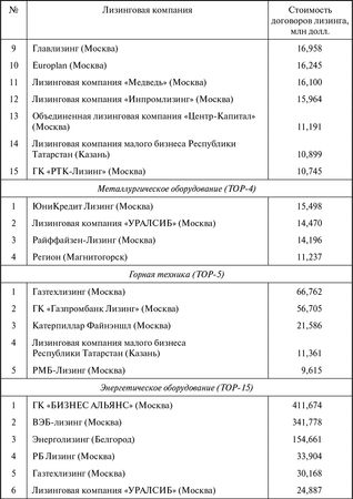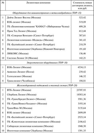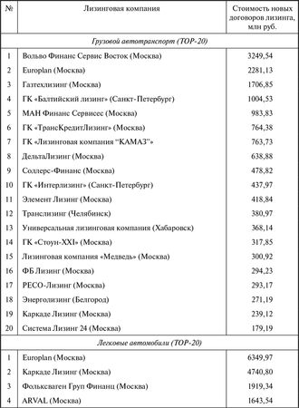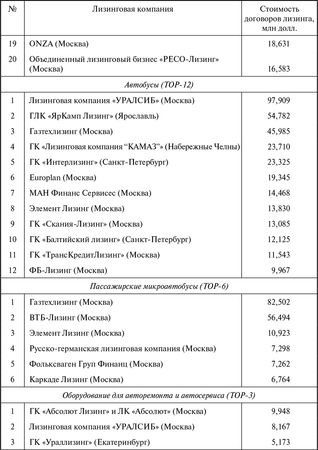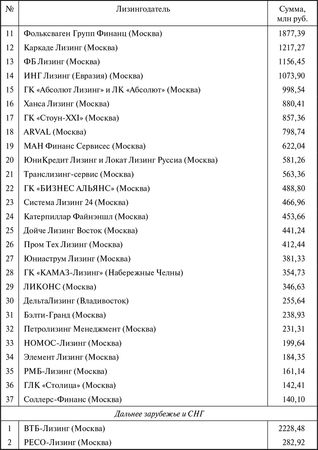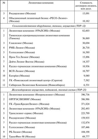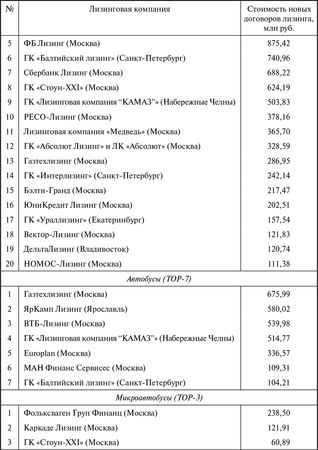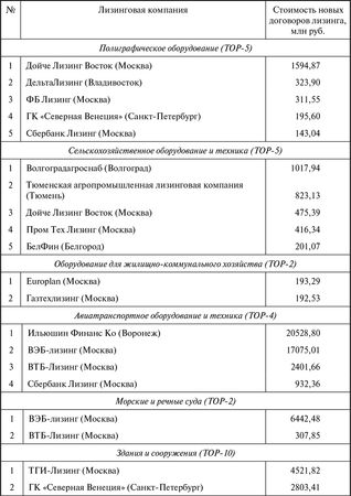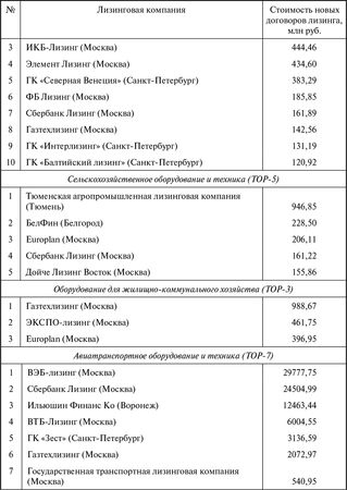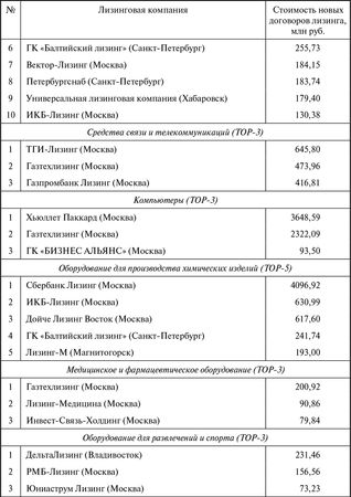 Ренкинг лизингодателей в сегментах рынка в 2009 г.