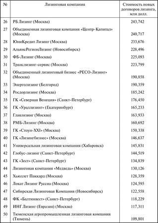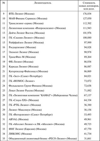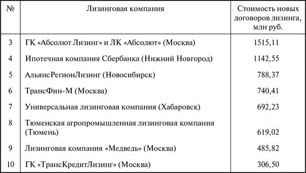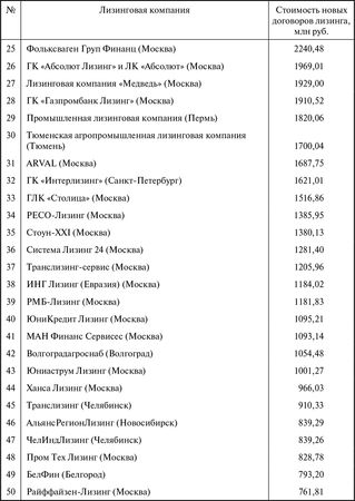 Ренкинг лизингодателей по стоимости новых заключенных договоров лизинга в 2009 г. (ТОР-50)