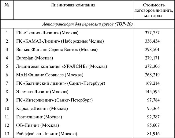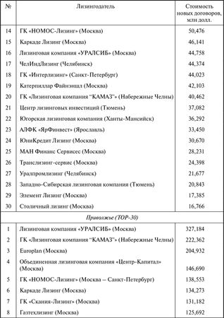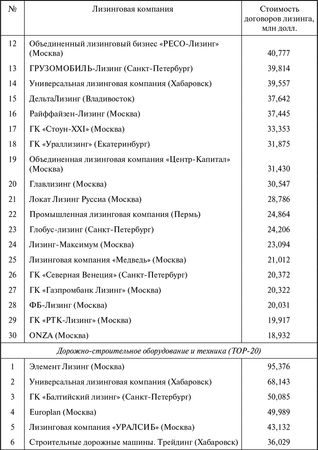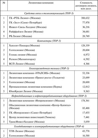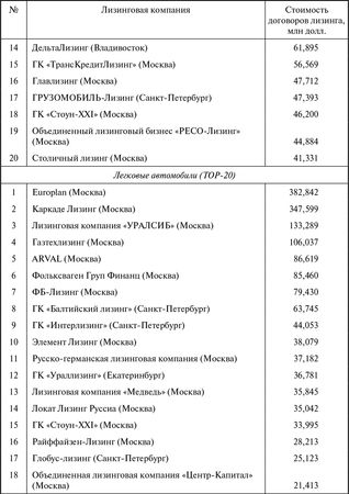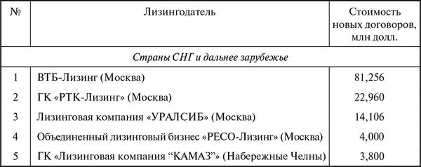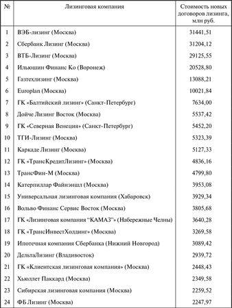 Ренкинг лизинговых компаний в сегментах лизингового рынка России в 2008 г.