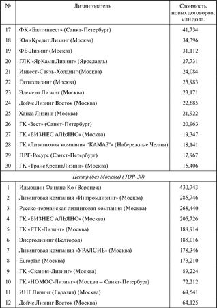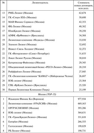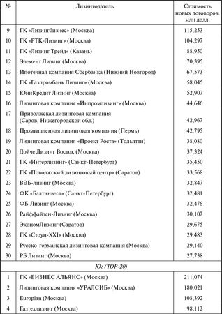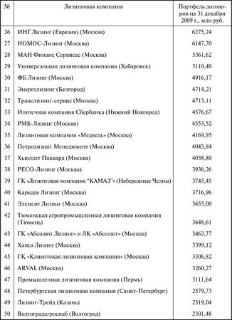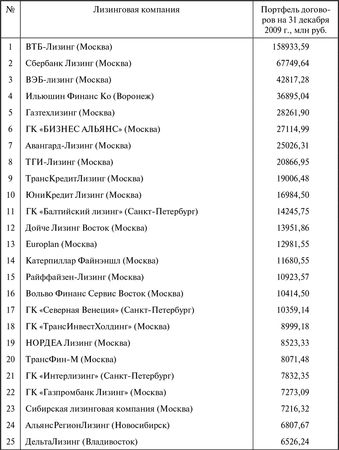 Ренкинг лизингодателей по величине портфеля действующих договоров на 31 декабря 2009 г. (ТОР-30)