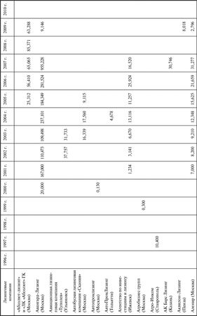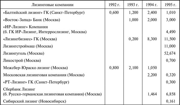 Стоимость новых договоров лизинга в 1992–2010 гг.
