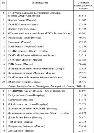 Ренкинг лизингодателей в регионах Российской Федерации по стоимости новых заключенных договоров лизинга в 2009 г.